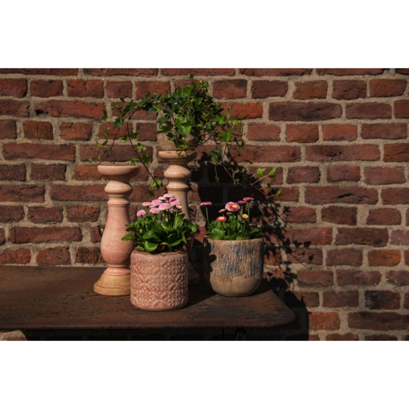 Růžový svícen na čajovou svíčku se stříbrným okrajem Maynor – 10x9 cm