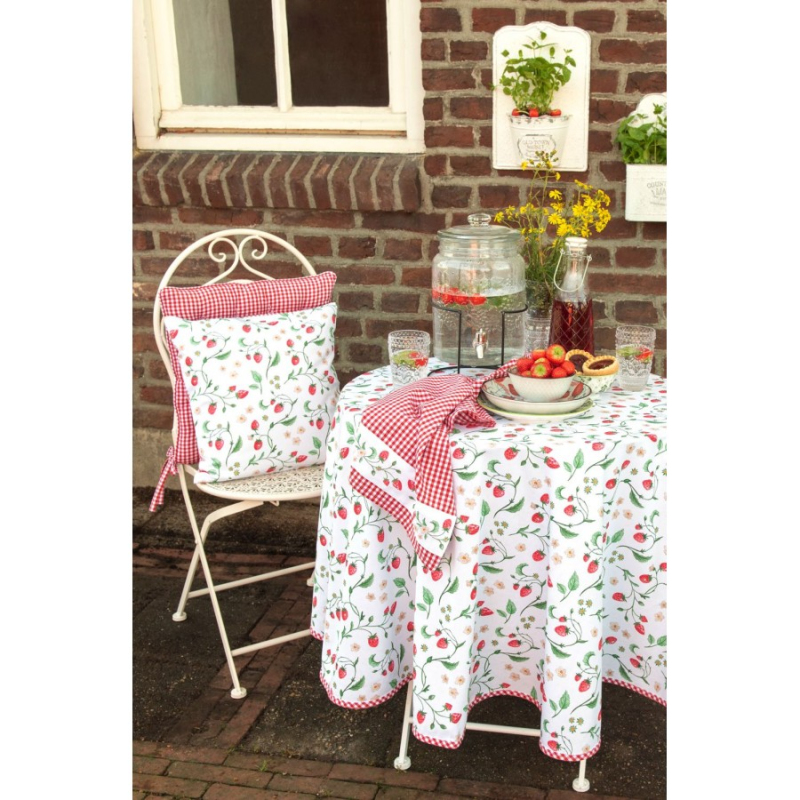 Klíčové vlastnosti Clayre & Kulatý kuchyňský ručník Eef: • Vyrobeno ze 100% bavlny • Vybaveno praktickým popruhem na zavěšení • Lze prát v pračce • Jedinečný kulatý tvar • Praktické a krásné zároveň • Rozměr 50*70 cm • Lze kombinovat s dalšími textiliemi z této řady • Jedinečný design navržený v Nizozemsku společností Clayre & Eef • Pro dosažení nejlepších výsledků přidejte do praní ocet Kdo by nemiloval jahody! Sladkost a pocit léta jsou prvky, které lze v tomto barevném textilu nalézt obojí. Tato rozsáhlá textilní série poskytuje veškerý komfort a lze ji detailně realizovat v (obývací) kuchyni, obývacím pokoji i zahradě. Atmosféru stolu dodávají ubrusy, běhouny, košíky na chleba, ubrousky a prostírání. Odpovídající nádobí doplňuje tento obrázek. Dekorativní polštáře pěkně oblékají židle a lavice uvnitř i venku. V kuchyni by také neměly chybět zástěry, kuchyňské utěrky, chňapky a chňapky. Přineste léto domů!