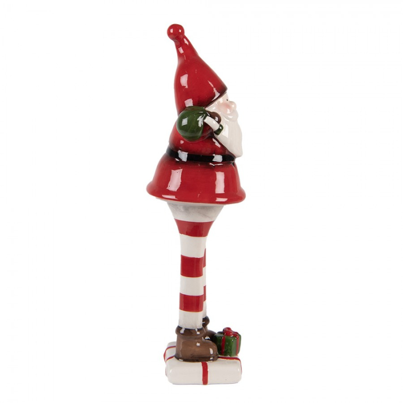 Červeno-bílá vánoční ozdoba skřítek v pruhované čepici s oranžovým dárkem Gnomda – 10 cm