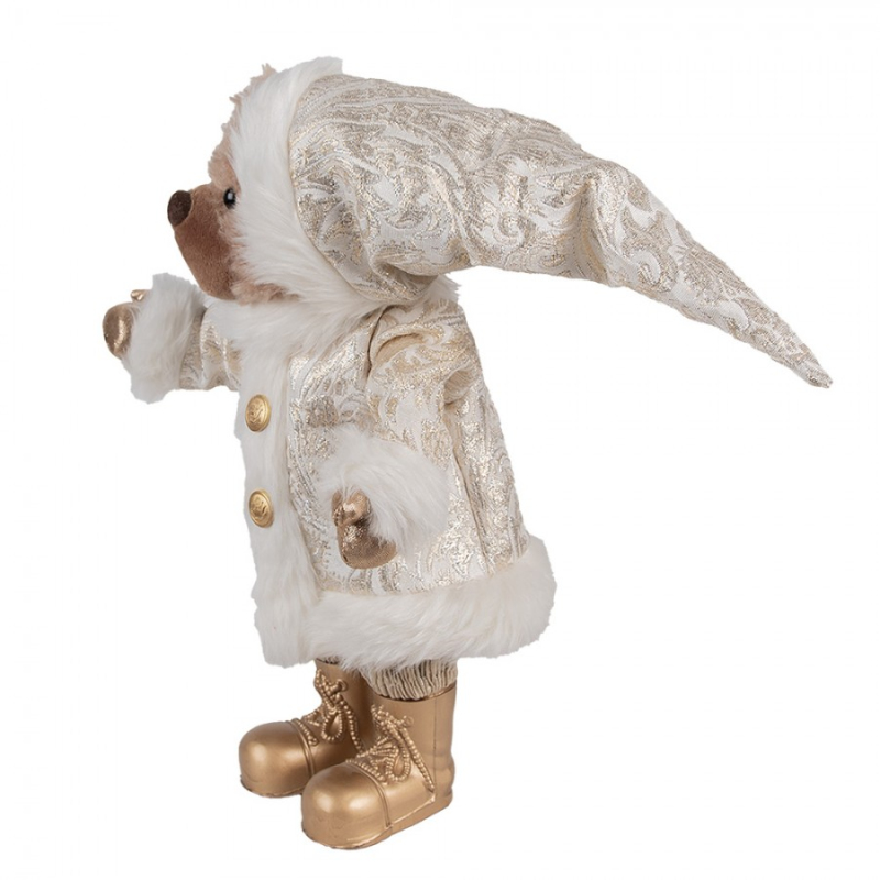 Vánoční dekorace plyšový medvídek ve zlatých holinkách a kabátku vnese do vašeho domova kouzelnou vánoční atmosféru. Detailní zpracování a jemné linie podtrhují tradiční sváteční náladu. Rozměr 36 cm umožní snadné umístění na stůl, polici nebo do vitríny. Ideální dekorace pro váš vánočně laděný interiér.