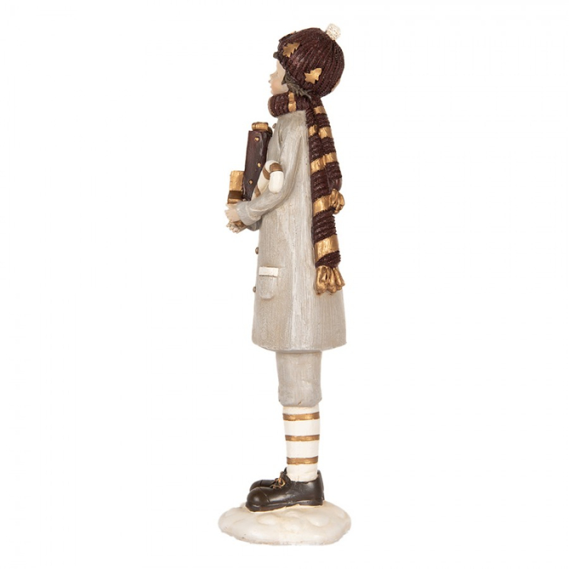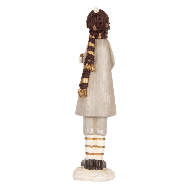 Hnědá vánoční dekorace figurka holky s jelenem se zlatým parožím – 17x12x22 cm