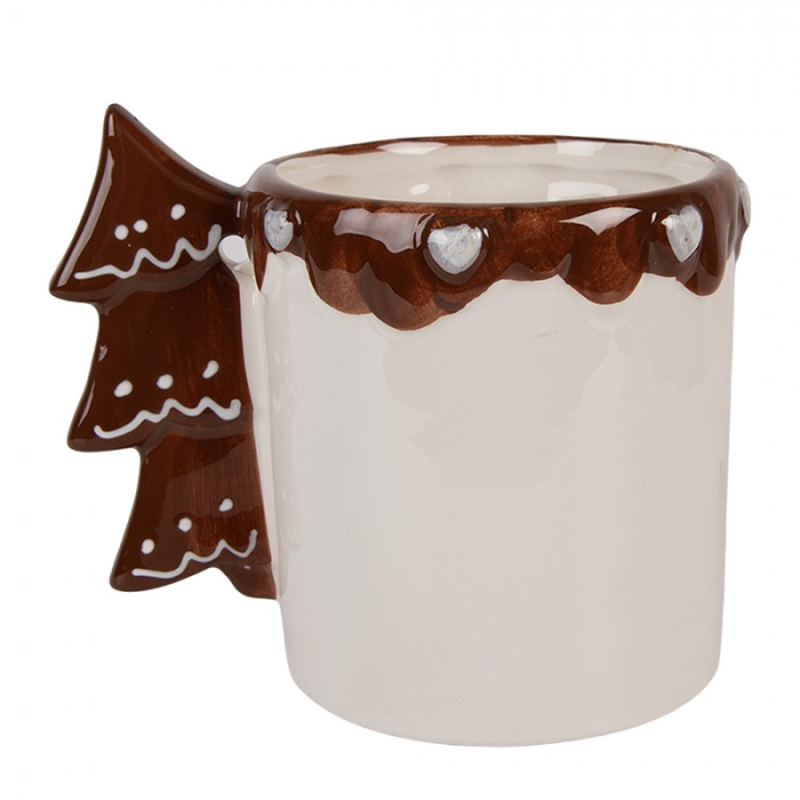 Vánoční keramický hrnek s miskou ve tvaru jelena béžovo-červený Moer – 12x12x18 cm