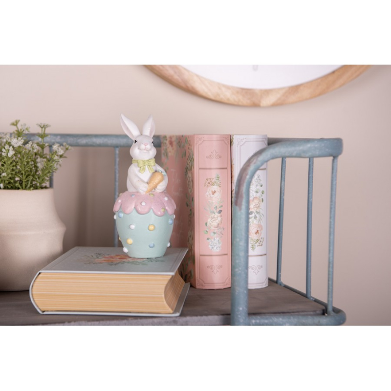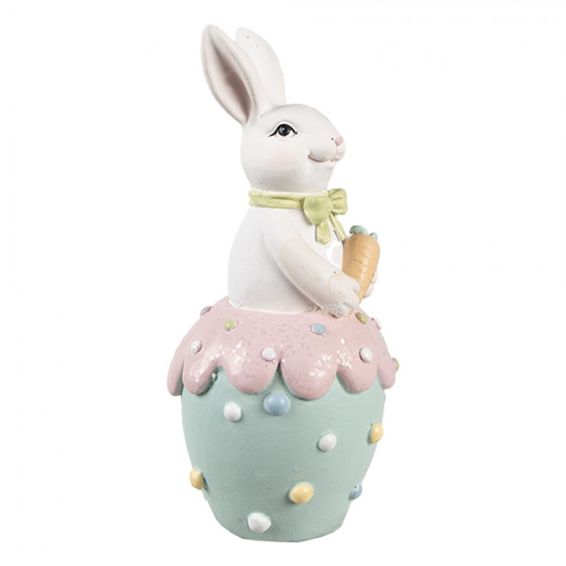 Velikonoční dekorace bílý zajíček v zeleném vajíčku s mrkvičkou přitáhne pozornost každého milovníka designových detailů. Skvěle se hodí jako doplněk velikonoční dekorace. Výrazné provedení a jemné linie tvoří harmonický celek. Rozměr 7x16 cm z ní dělá středobod každé dekorace. Skvělý tip na dárek nebo oživení interiéru.