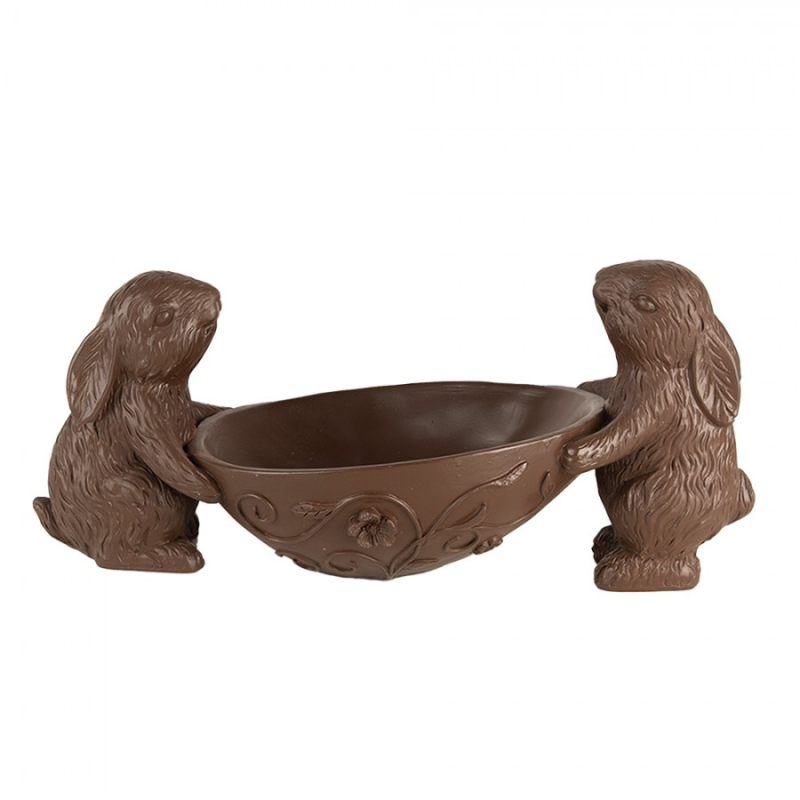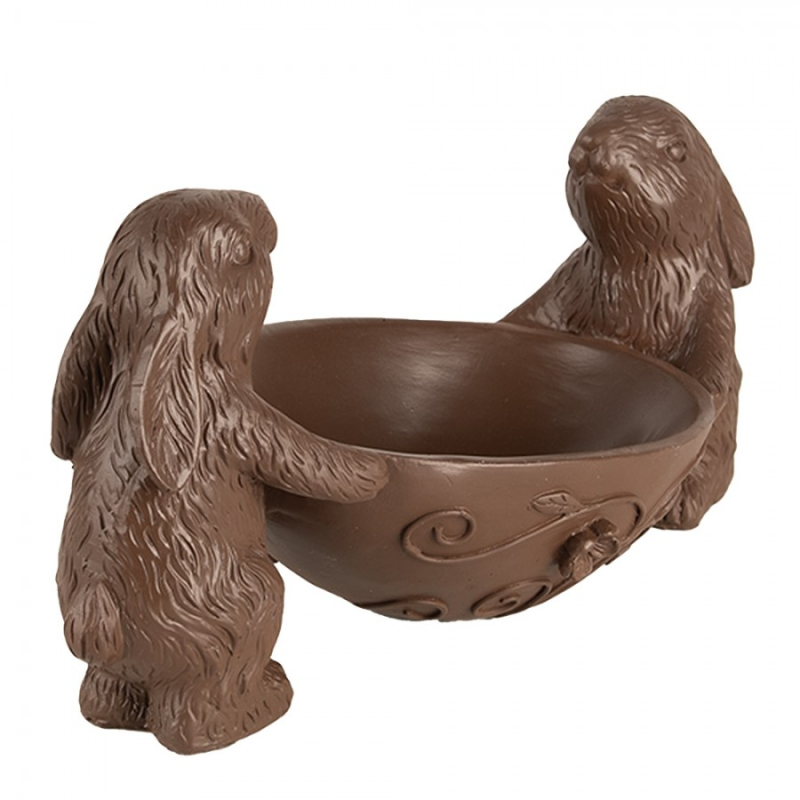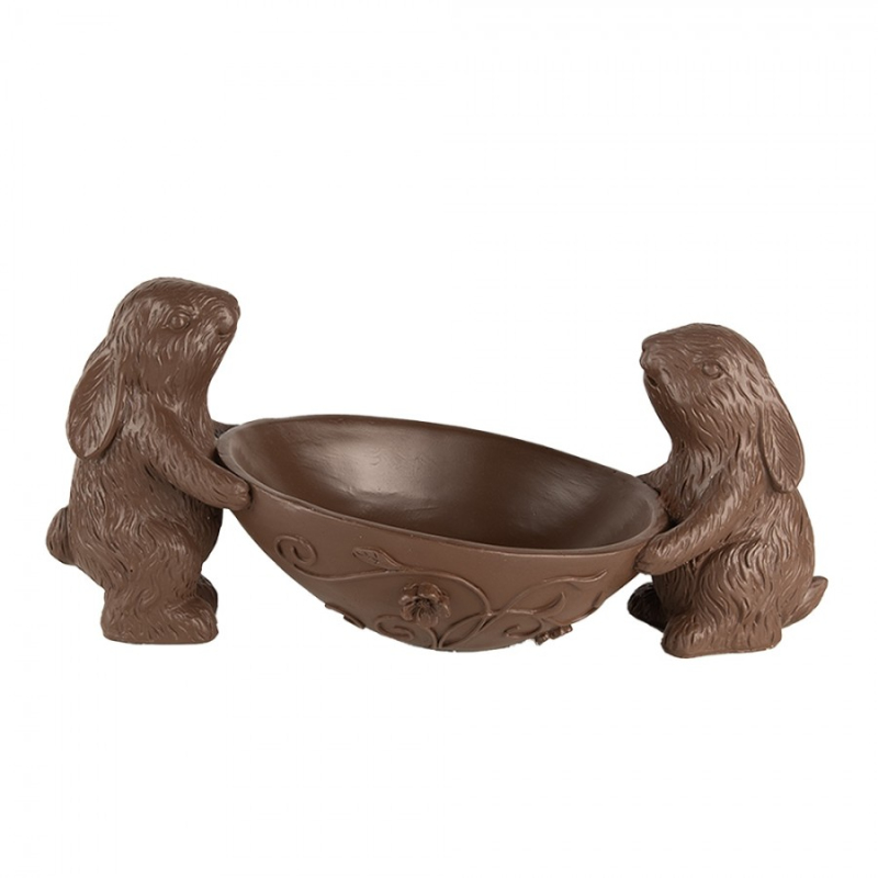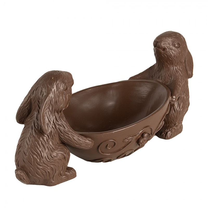 Velikonoční dekorace čokoládoví králíčci držící rozpůlené vajíčko z kolekce Zoete Pasen přitáhne pozornost každého milovníka designových detailů. Skvěle se hodí jako doplněk velikonoční dekorace. Výrazné provedení a jemné linie tvoří harmonický celek. Rozměr 34x15x15 cm z ní dělá středobod každé dekorace. Skvělý tip na dárek nebo oživení interiéru.
