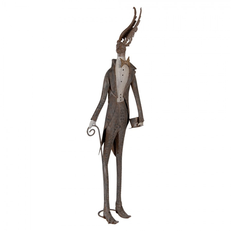 Dekorace ve vintage stylu bílý králík s trubkou a výraznou patinou – 18x7x34 cm