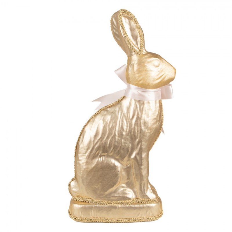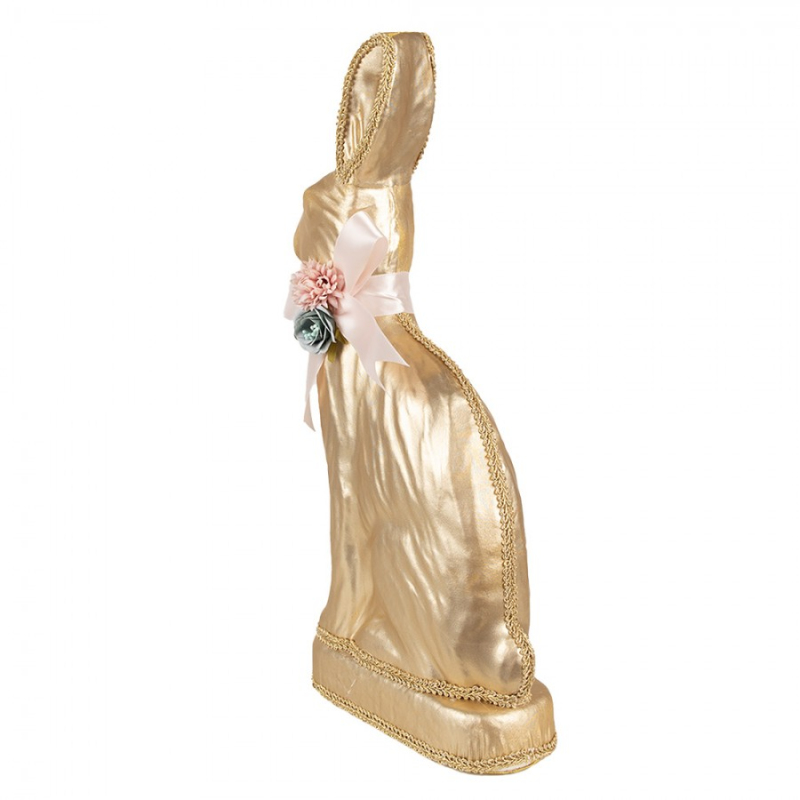 Velký zlatý zajíček s květinou na krku přitáhne pozornost každého milovníka designových detailů. Výrazné provedení a jemné linie tvoří harmonický celek. Rozměr textilní dekorace z ní dělá středobod každé dekorace. Skvělý tip na dárek nebo oživení interiéru.