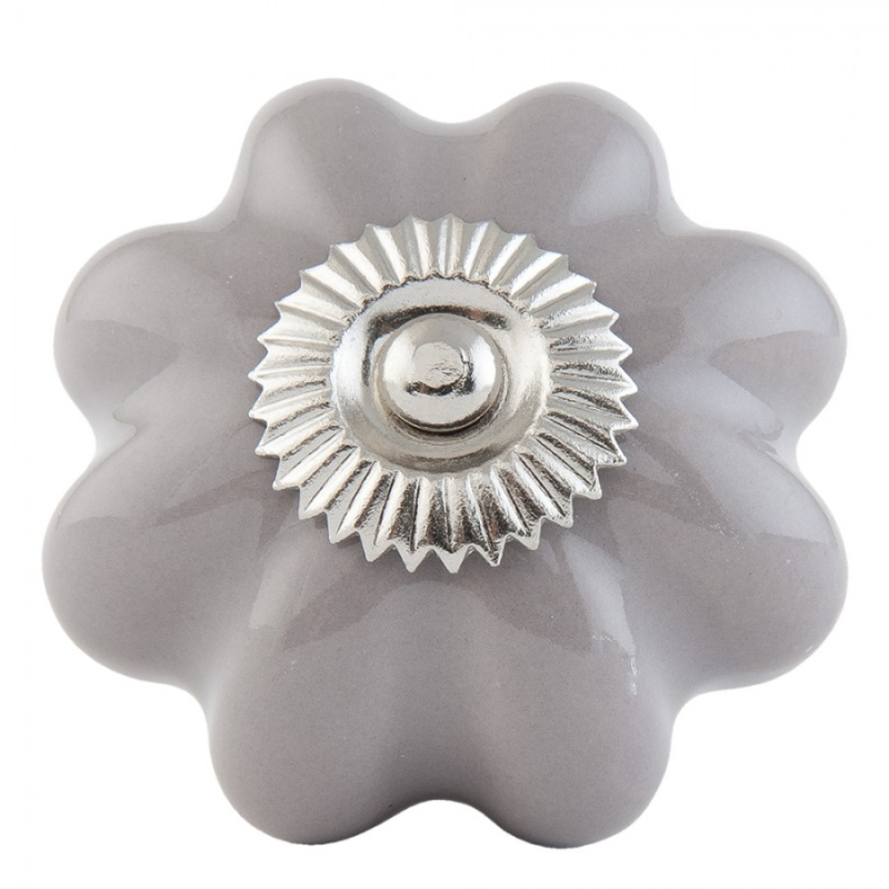 Vintage šedá keramická úchytka Květina – 4 cm od Clayre & Eef.