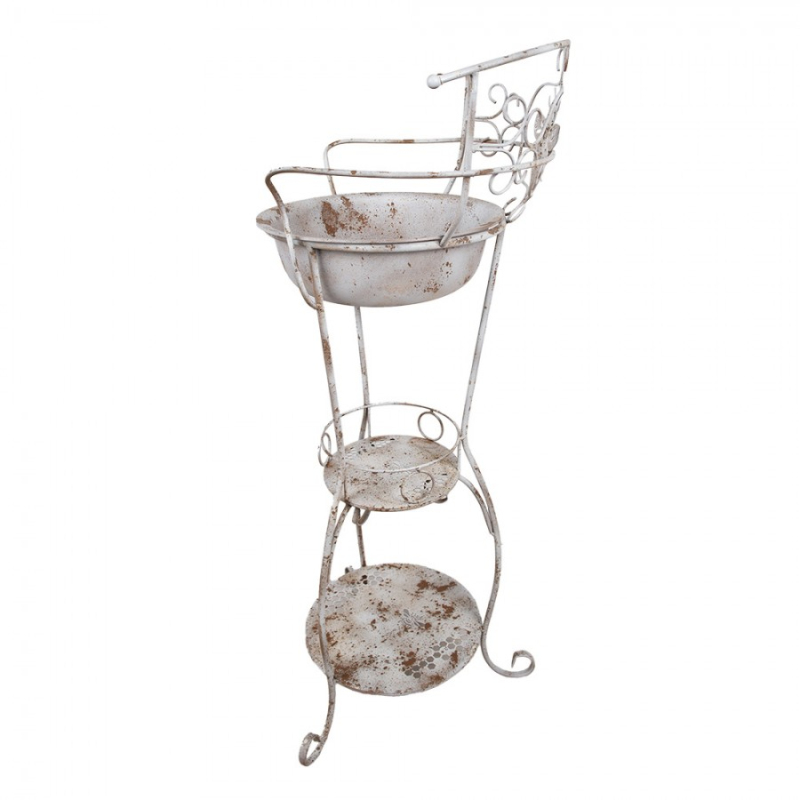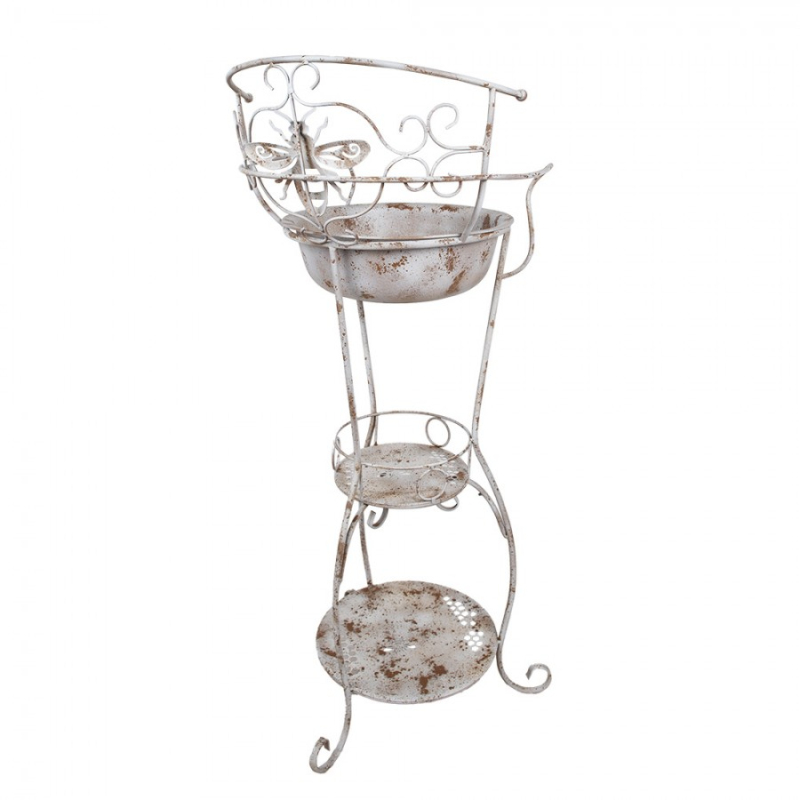 Bílo-zlatá dekorační plechová konev s kytičkami Welcome To My Garden – 34x12x32 cm