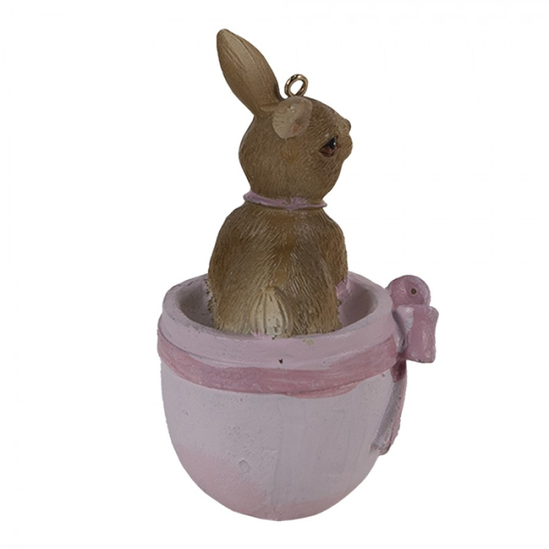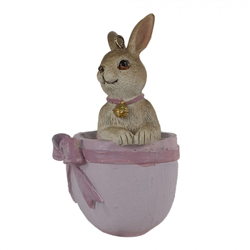 Modré vajíčko se zajíčkem a květy na vysokém bílém podstavci – 13x12x28 cm