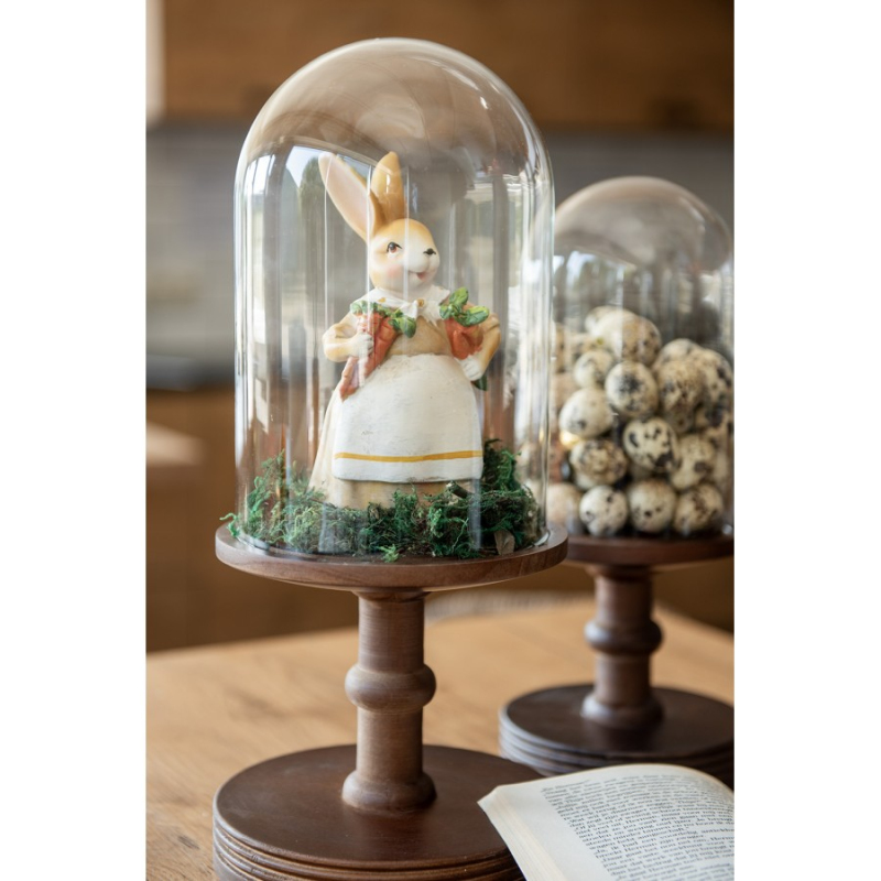 Kovová dekorace figurka bílé zaječice v modrých šatech s motýlem – 20x12x76 cm