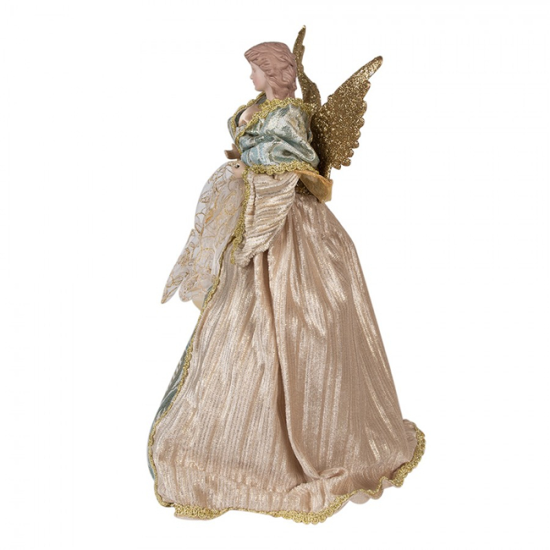 Zlatá vánoční dekorace anděl se zlatými křídly a růžovo stříbrnými šaty s vlečkou vnese do vašeho domova kouzelnou vánoční atmosféru. Detailní zpracování a jemné linie podtrhují tradiční sváteční náladu. Rozměr 43 cm umožní snadné umístění na stůl, polici nebo do vitríny. Ideální dekorace pro váš vánočně laděný interiér.