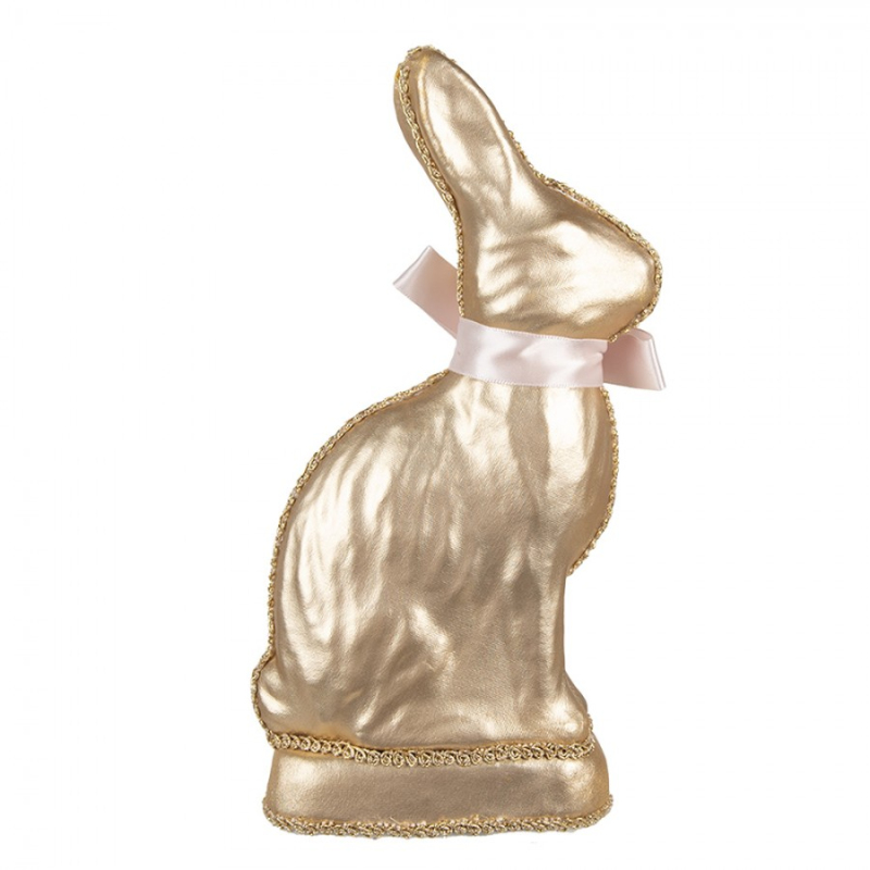 Zlatý zajíček s růžovou květinou dodá interiéru osobitý nádech a eleganci. Skvěle se hodí na komodu, polici nebo do okenního výklenku. Rozměr textilní dekorace je ideální pro výraznou, ale vkusnou prezentaci. Stylový doplněk pro váš domov i sezónní dekorace.